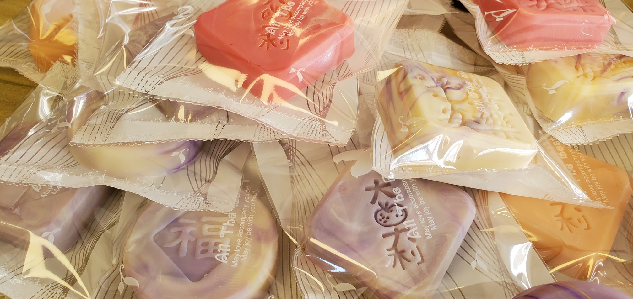 🎄✨ 新年限定優惠 🌟新年橄欖滋潤手工皂 3 件 (每件35克+/-3克,字款及顏色隨機) + 小手抽袋1個 (顏色隨機) 適合膚質 : 一般性 功效 : 清爽 保濕 止痕癢 橄欖油中的單元不飽和脂肪酸和維生素E等成分,有助於保持肌膚彈性和緊緻 成份 : 棕櫚油 椰子油 橄欖油 米糠油 蒸餾水 低脂奶 氫氧化納 複方精油
